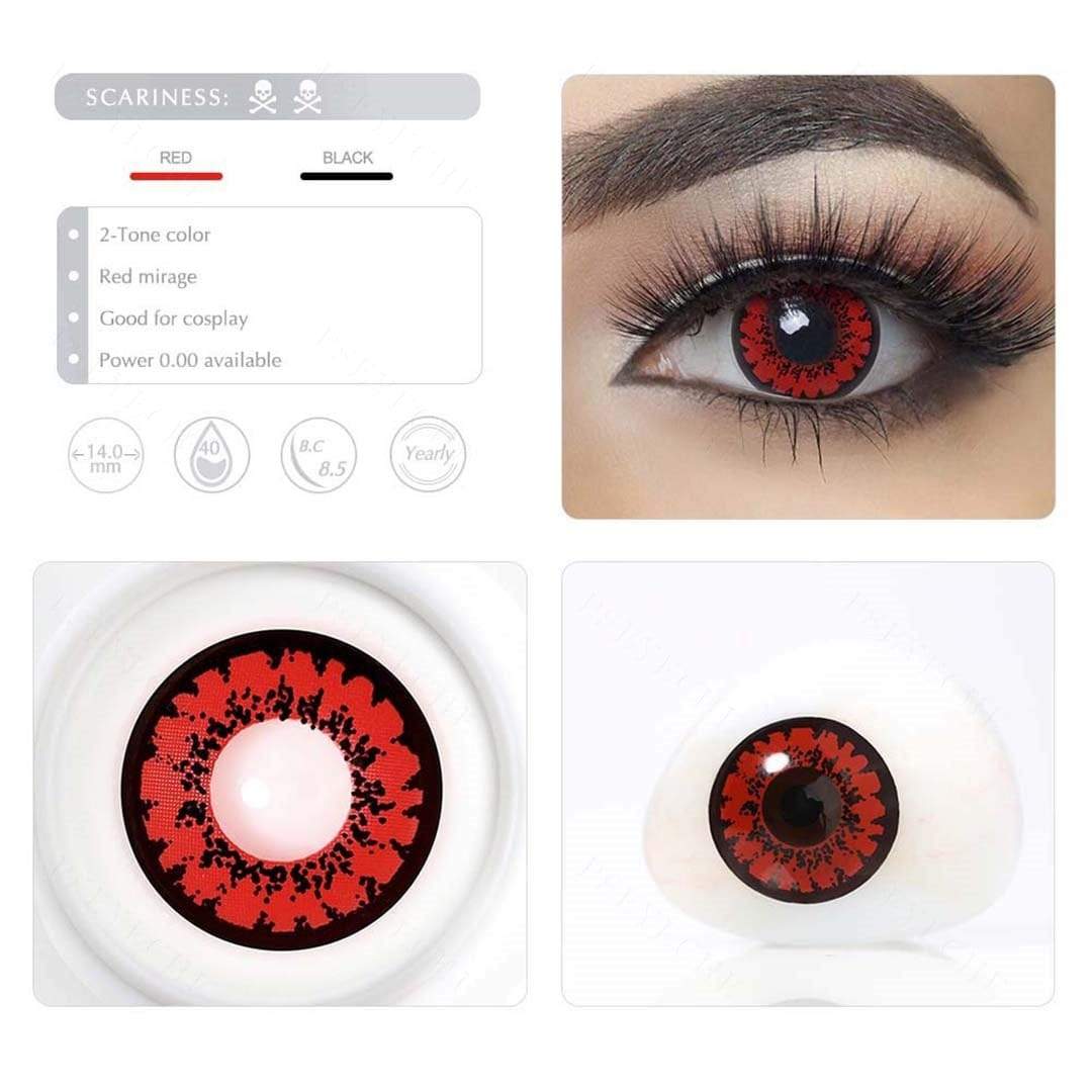 Red Mirage crazy contacts are ideal for wacky & grotesque transformations. Wearing Red Mirage crazy contacts and let your little universe burst out!